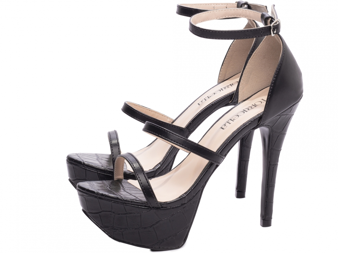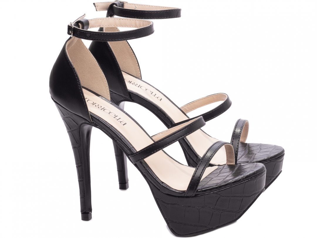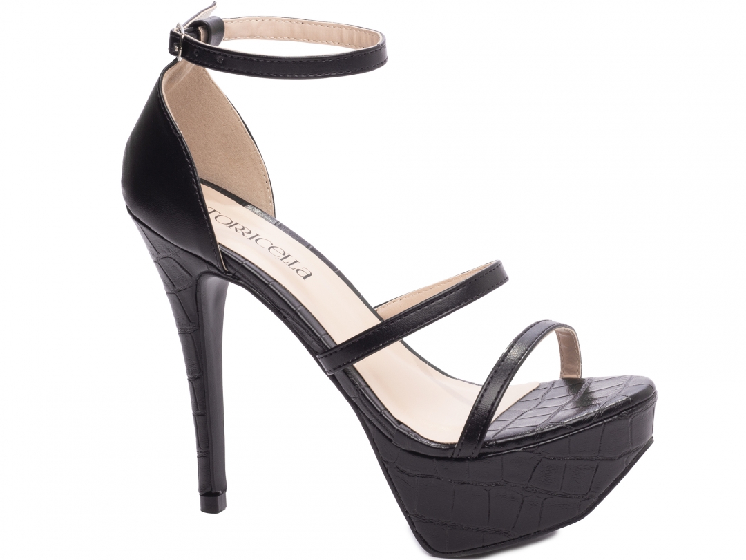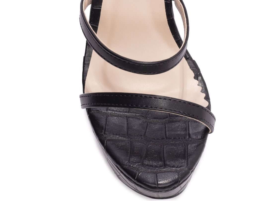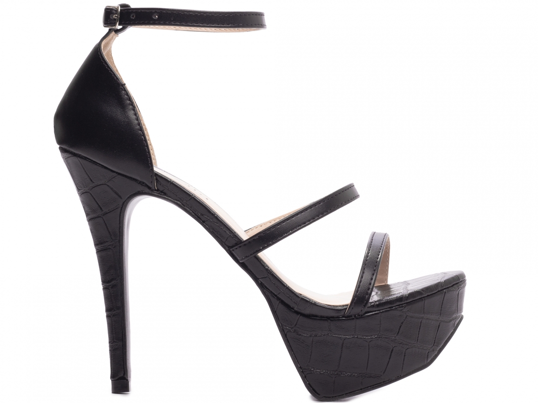 Salto: Fino com 13 cm de Altura Revestido em Napa Croco Preto;