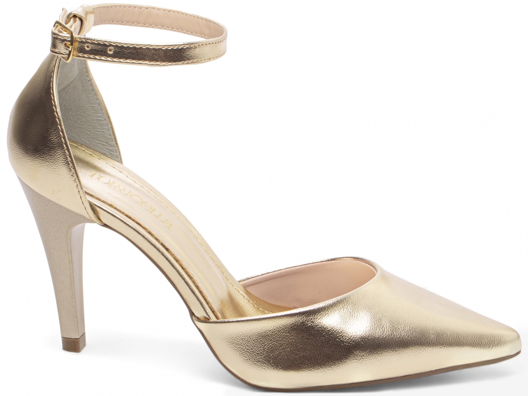 Palmilha: Confort com 8 mm de Espessura, Espuma em EVA, Revestida com Napa Dourado e Taloneira em Napa Dourado;