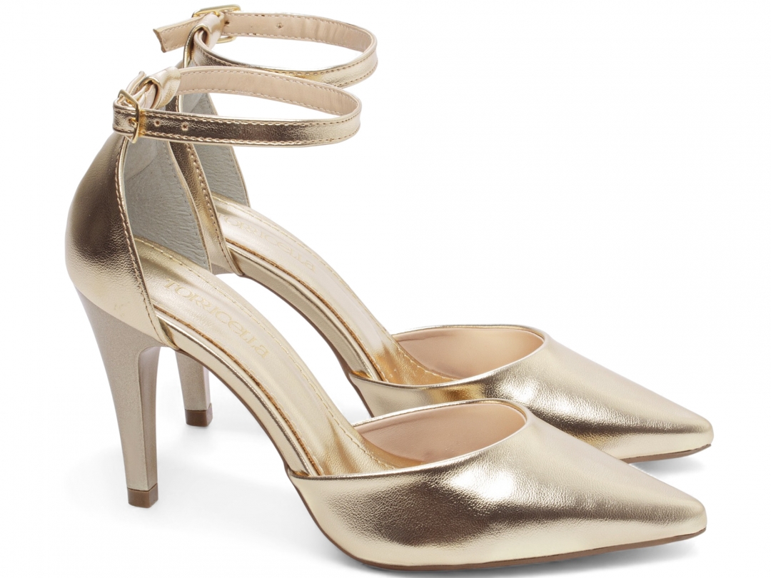 Salto: 10 cm de altura Pintado na Cor Dourado;