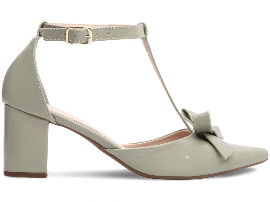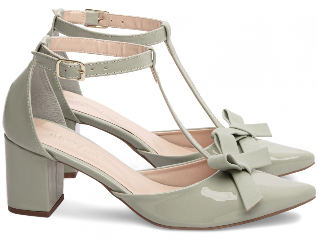 Salto: Grosso com 6,5 cm de Altura Revestido em Verniz Verde;