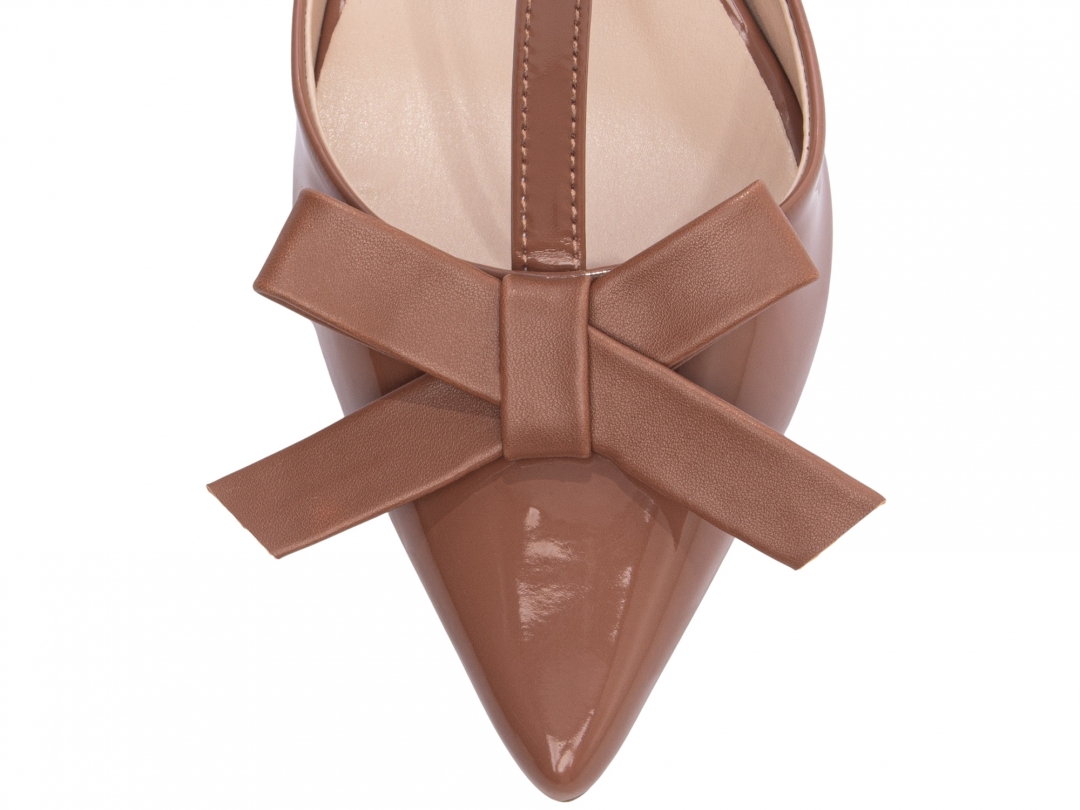 Enfeite: Laço na cor Napa Caramelo e Fivela de Ajuste na Cor Dourado;