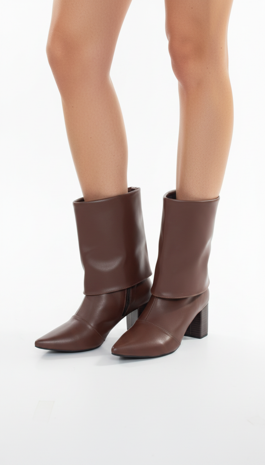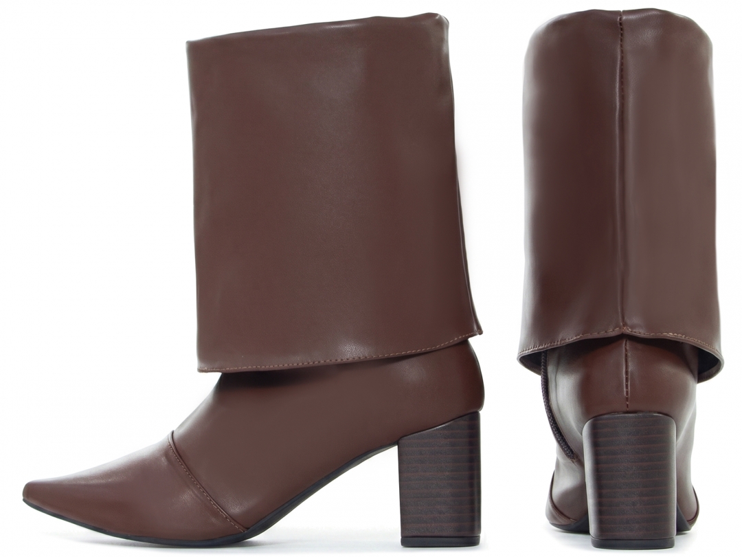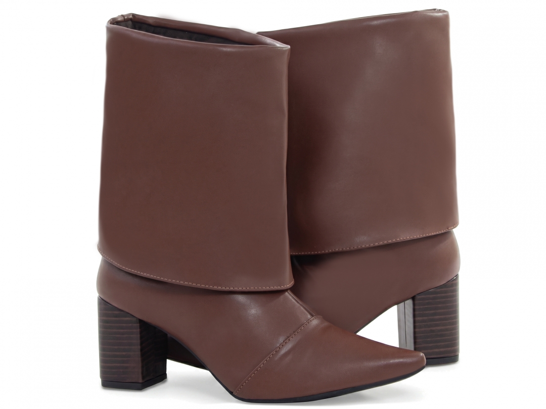 Enfeites: Zíper na cor Marrom Café (lateral interna) e material com vira no cano em Napa Marrom Café (não removível);