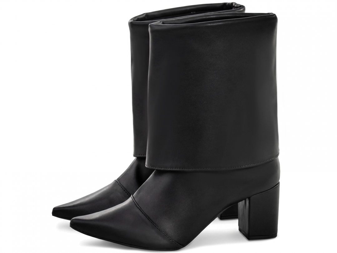 Enfeites: Zíper na cor Preto (lateral interna) e material com vira no cano em Napa Preto (não removível);
